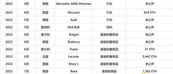 CoinGecko考察了自2020年以来独立或与合作伙伴推出可交易NFT系列的欧美“传统”品牌。