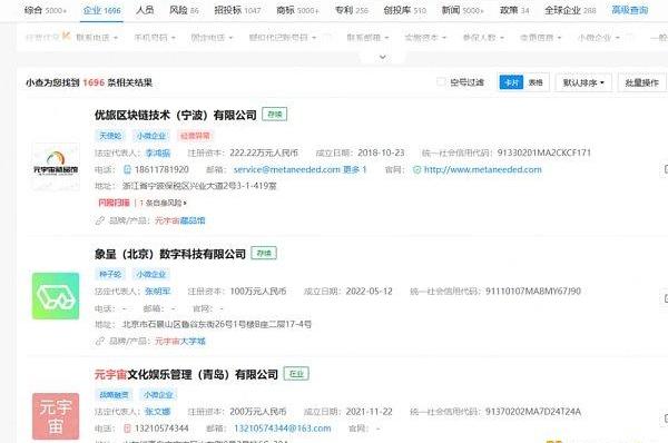 图:据企查查网站显示,搜索“元宇宙”关键词,全国已有超1600家公司布局元宇宙相关业务。来源:企查查