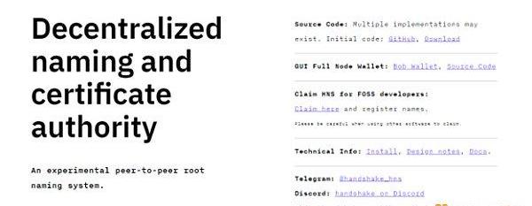 Handshake是一个去中心化的、无许可的命名协议,旨在通过提供一个替代公司管理域名(如.com)的替代方案,为web带来一个去中心化的新时代。