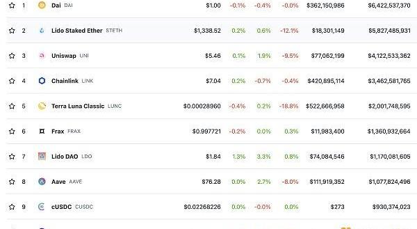 1.DeFi代币总市值:442.11亿美元