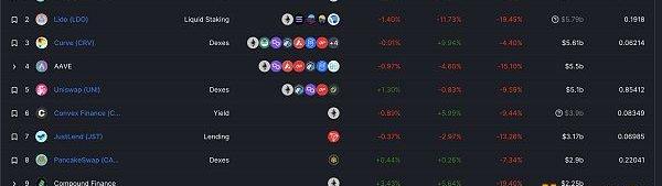 DeFi项目锁定资产前十排名及锁仓量数据来源:defillama