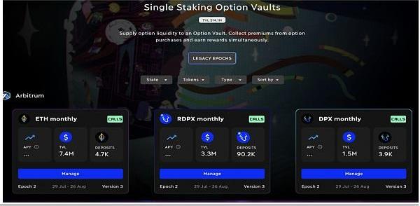 另外其Thetavaults是一组专注于资产收益率提升策略的结构化产品。允许用户将ETH和WBTC存入Vault,以产生年收益率。ThetaVaults运行两种期权策略来产生收益: