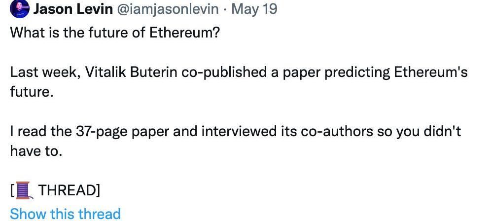上周,V神共同发表了一篇预测以太坊未来的论文。我阅读了这篇37页的论文,并采访了这篇文章的共同作者,所以铁子们不用读那篇长文,看我的总结就行了。