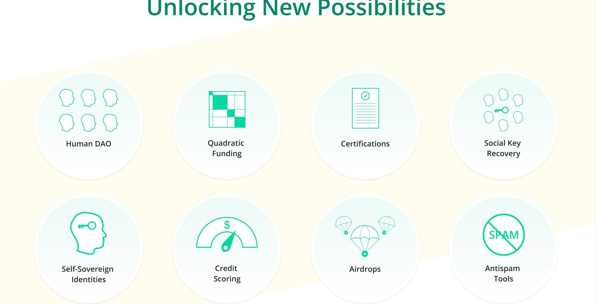 每个申请人都必须由一个已经确认的身份作担保。用例包括保险、信用评分、二次融资、抗女巫空寂空投、DAO或普遍基本收入。
