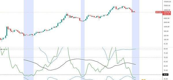 上方为BTC周线走势,可以发现上方50周线即将向下死叉100周线,上一次两线死叉还是在2018-2019熊市底部区域,再上一次死叉在2014-2015熊市底部,后面经过一段时间的低位盘整,筑底后启动牛市行情,并且可以看到下方长期趋势支撑线并未跌破,前期熊市也未破过,不破就有再次筑底走牛的机会,不破依旧可以考虑逢低布局,下方趋势支撑17800-18000.