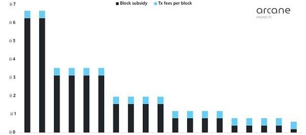 从历史上看,每个区块的平均交易费用为0.4比特币,这只是当前区块奖励的一小部分。交易费用可能看起来是区块奖励中不起眼的一部分,但随着比特币减半,交易费用将变得越来越重要。比特币减半每四年发生一次,区块补贴随之减半。在本文后面的一节中解释了减半对比特币能源消耗的影响。