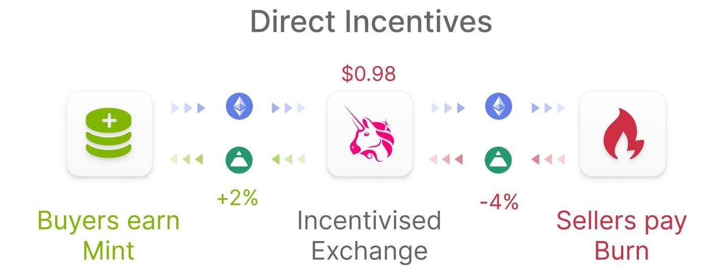 此后,FeiProtocol最初设计中的燃烧和奖励机制并没有再出现过。若仅此而已,用户能够以ETH铸造FEI,又能将FEI赎回为1美元的ETH。在遭遇极端行情的情况下,FeiProtocol的国库资金可能不足以让FEI全部赎回为DAI。为了规避市场波动的风险,FeiProtocol逐步将持有的ETH换成稳定币,并将FEI和DAI绑定,只允许以DAI铸造FEI,也只能将FEI赎回为DAI,类似于MakerDAO中DAI与USDC的锚定稳定模块。至此,FEI的价格得以成为真正的稳定币,资不抵债的可能性非常低。
