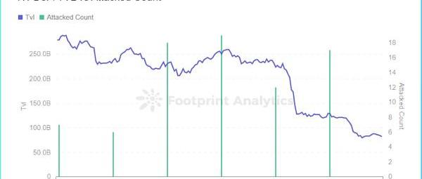 从攻击活动损失金额和攻击次数综合来看,3月、4月为黑客活跃程度最高的月份,同样3月、4月的TVL也处在半年的相对高点。5月TVL骤降,黑客攻击频次和盗取金额随之大幅降低。6月TVL持续降低,黑客活跃度较5月有所增加,但相对于3、4月仍是低位。