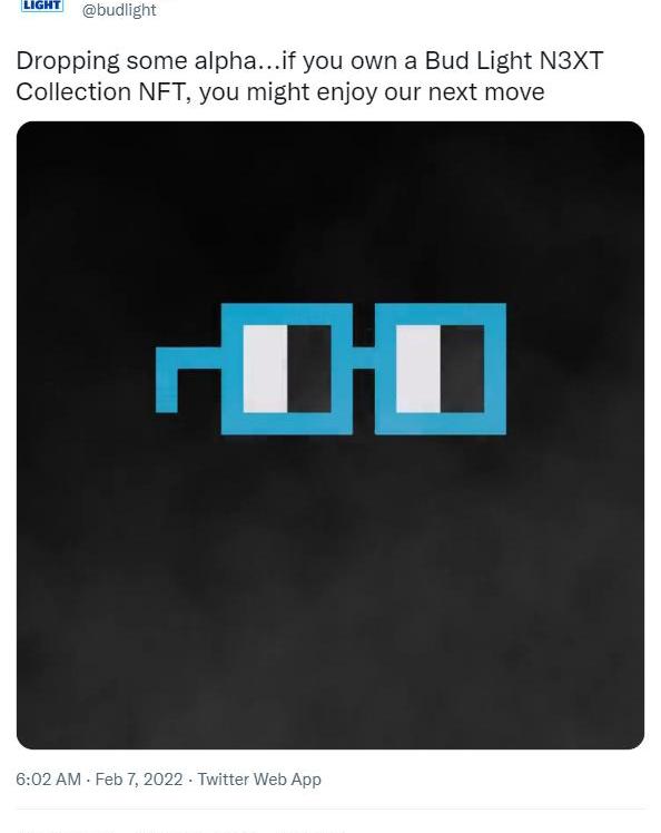 啤酒品牌BudLight在广告中使用了Nouns的眼镜LOGO