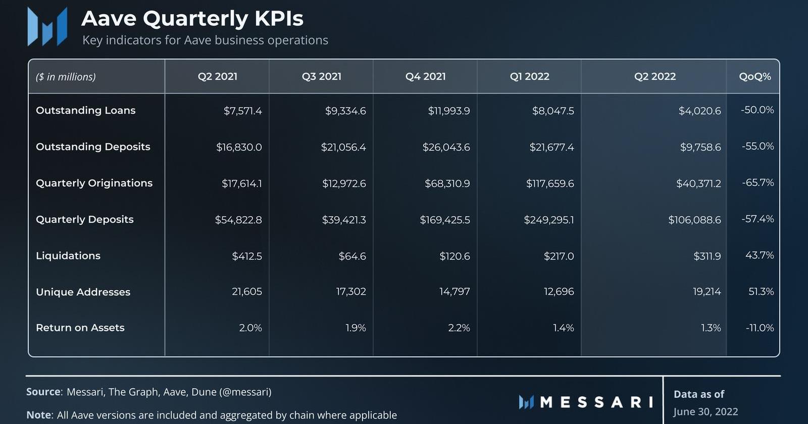 Aave季度收入下降18%,原因是UST暴雷和中心化借贷平台的倒闭减少了对Aave贷款的需求。