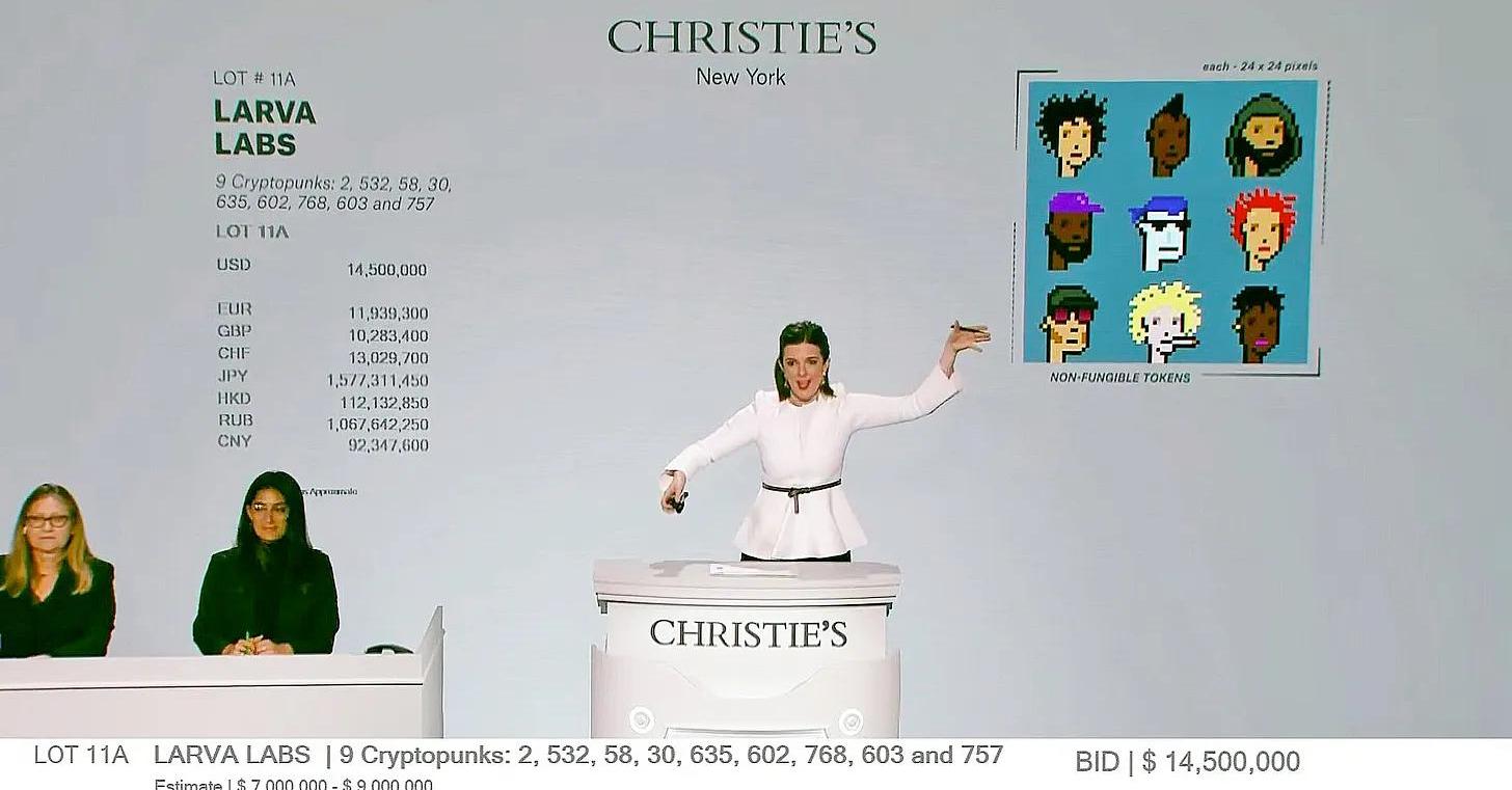 9个加密艺术品CryptoPunks拍卖逾1450万美金