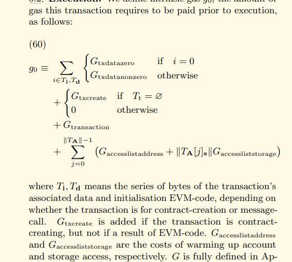 假设Nzeros代表交易负载中,字节为0的字节总数;Nnonzeros代表交易负载中,字节不为0的字节总数。可以通过下列公式计算出该交易的固有成本,参考黄皮书6.2章节: