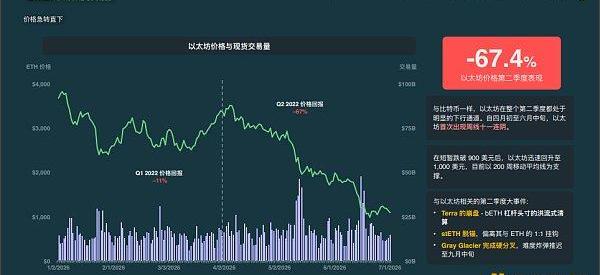眼看2022年进度条过半,对于加密市场来说,2022年第二季度可谓是多灾多难。截止第二季度末,整个加密市场的总市值约为9,000亿美元,相比于去年的十一月份的峰值,环比下降约70%。和第二季度相比,第一季度的表现恰好就像是暴?雨来之前的平静。