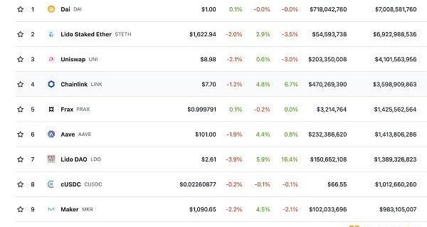 DeFi项目锁定资产前十排名及锁仓量数据来源:defillama