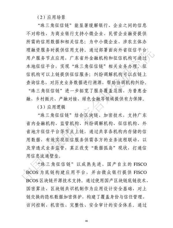 作为一大亮点,报告引用了大量基于FISCOBCOS,并在粤港澳大湾区落地的应用案例:在数字经济发展方面,“粤澳跨境数据验证平台”、“湾区金融科技人才链”、“珠三角征信链”、“深证金融区块链平台CapitalBCOS”等案例入选;在数字社会建设方面,“澳门智慧城市建设之证书电子化”、“粤澳健康码跨境互认”、“腾讯99公益日”等案例入选;在区块链推动数字政府建设方面,“网贷机构良性退出投票平台”、“区块链司法存证仲裁服务平台”、“深圳水务集团工地安全管理系统”、“智慧司法区块链留痕系统”等案例入选。