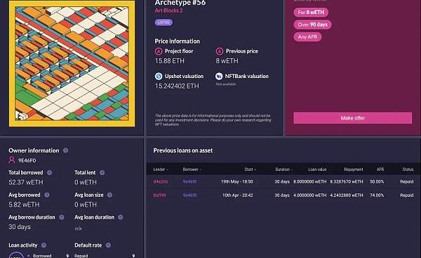 NFT所有者可以将他们的NFT上架到平台并填写他们喜欢的条款,包括贷款金额、期限、APR和代币,流动性提供者则可以在平台上浏览每个NFT的贷款条款并提出报价。