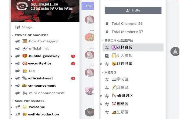 Discord上的一些群组界面,由MagipopDAO、ImmerseDAO授权发布