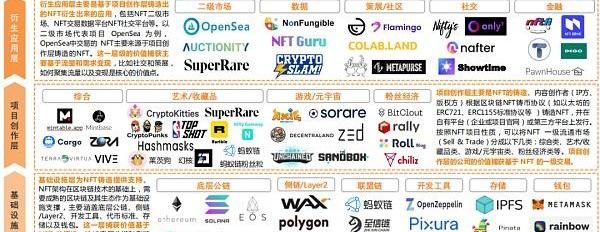 可以将NFT产业价值链按功能属性划分为基础设施层、项目创作层、衍生应用层。如图6-1所示。