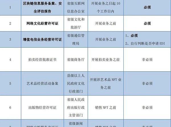 当前我们认为,以下几项行政许可及资质,是在与在境内开展NFT相关业务关联性最强的,如“区块链信息服务备案”等更为必不可少的资质,务必提起重视,具体详情见下文。