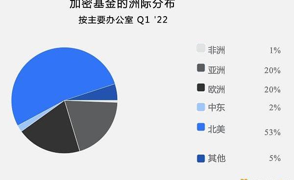 超过一半的加密基金位于北美,大部分位于美国。欧洲和亚洲各拥有约20%的基金。