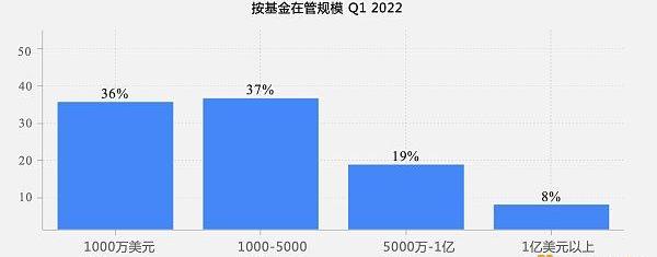 尽管加密基金在管规模持续增长,但资产仍然高度集中在几十家基金手中。不过,最近的趋势是加密基金规模越做越大。这主要是由于其强劲的表现以及一些较小基金的减员。此外,数只承诺资本超过1亿美元的新基金在本季度推出。