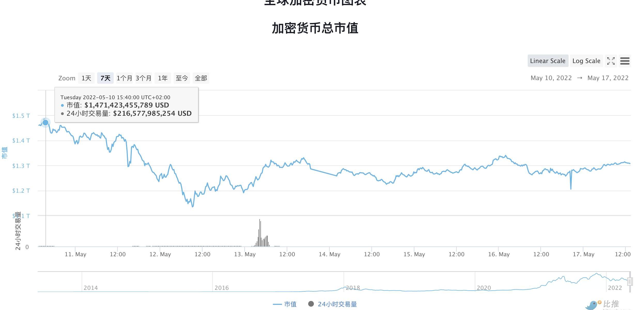 比推消息,据coindesk报道,根据花旗在5月13日发布的一份报告中表示,在第三大稳定币terraUSD(UST)崩盘后,加密货币市场在过去一周一直承压。
