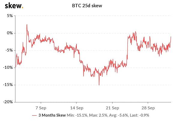 比特币3个月期期权delta skew达到25%? 来源:Skew