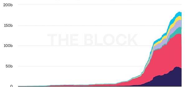 上图:稳定币总供应量增长情况,来源:TheBlock
