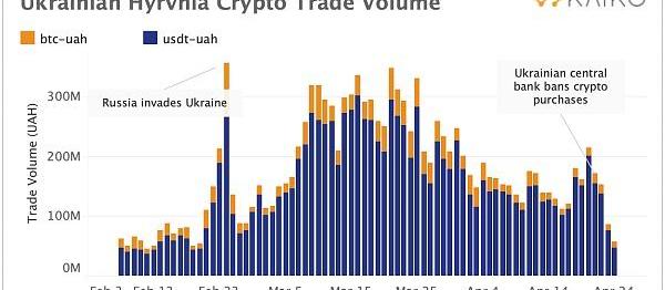 由于央行的禁令,乌克兰加密资产交易量降至战前以来的最低水平。