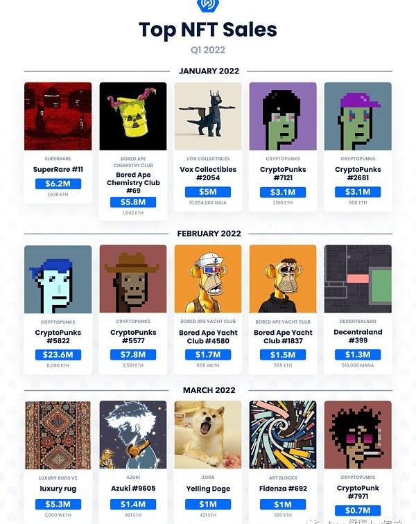 在2022年第一季度,NFT产生了120亿美元的交易,而销售和独立交易者的数量正在增加;以太坊以外的区块链中,NFT活跃正在增加。