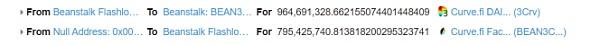 2.黑客通过闪电贷换取了350,000,000个DAI,500,000,000个USDC,150,000,000个USDT,32,100,950个BEAN和11,643,065个LUSD作为资金储备。