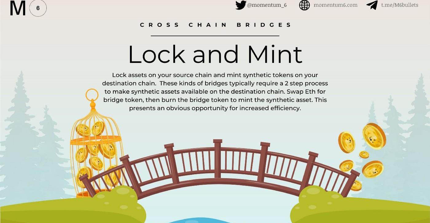 锁定源链上的资产并在目标链上铸造合成代币。这是目前最常见的桥类型。ERC20代币就是一个很好的例子。ERC20可以代表以太坊上的任何资产。BTC变成wBTC;甚至ETH本身也可以被封装成wETH。
