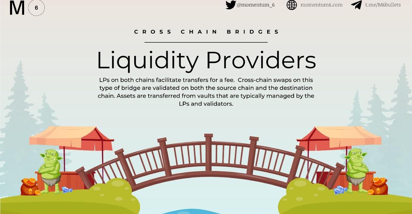 两个链上都创建了池,并促进了收费转移。当这个系统充分去中心化、有效地重新平衡,并且LP有足够的激励措施来保持桥梁两侧充足的流动性时,该系统运行良好。这种类型的桥上的跨链交换在源链和目标链上都得到了验证。资产从通常由LP和验证者管理的金库转移。