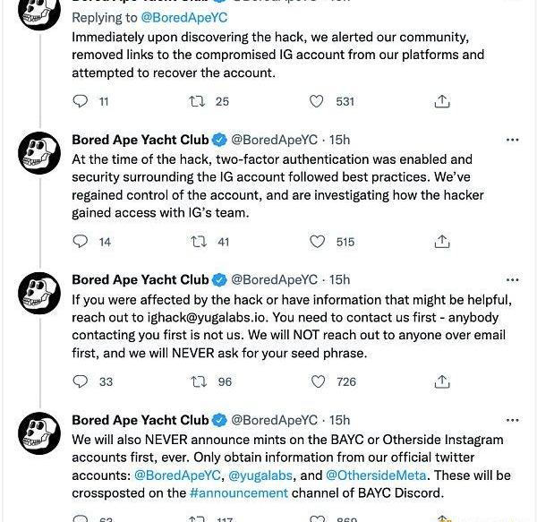 “发现黑客攻击后,我们立即向社区发出警报,从我们的平台上删除了指向受损IG帐户的链接,并试图恢复该帐户。”