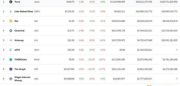 DeFi项目锁定资产前十排名及锁仓量数据来源:defillama