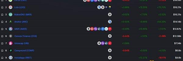 DeFi项目锁定资产前十排名及锁仓量数据来源:defillama
