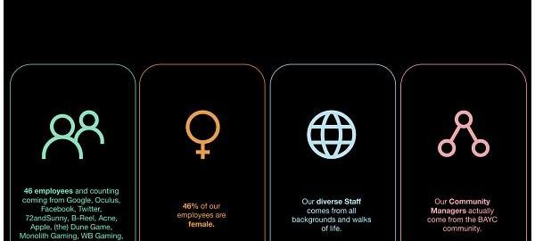 再纵观YugaLabs的整个团队,目前总共46个雇员,来自全世界各地有着不一样的文化及背景,大多数员工都来自大型的公司。其中最重要的一点是所有的社区管理者都来自于社区。
