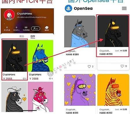 因NFT在国外大热,国内也纷纷跟风,可以看到其实有一部分平台发布的藏品是没有收藏价值的,也没有创意,他们只想收割韭菜,为了利益甚至还有交易平台公然抄袭。《国内NFT买到“假”作品你被NFT割韭菜了吗?》这篇文章中指出国内某NFT交易平台一个账号被爆出照搬国外某NFT交易平台账号的作品售卖。讲述的是国外的一个团队与艺术家MayaDelia合作,创造了一个NFT小马系列。可能是信息不对称的原因,国内大部分媒体没有对此艺术家的报道,于是就有人“光明正大”的冒用CryptoHans的账号在某社交平台和中国的某NFT交易平台上做了“官方认证”。并发布了一些作品,这些作品与国外NFT交易平台上的作品,从颜色、形象、细节、名称、创作时间、包括艺术家,几乎所有信息都是一致的。对此有网友去求证,得到的官方答案是,这款NFT只在OpenSea上销售。