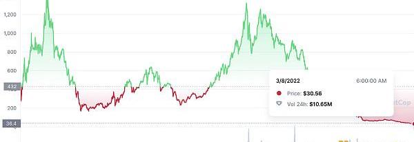 Olympus原生TokenOHM价格走势图,较最高点跌去了98%