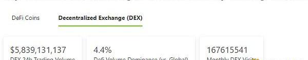 2.过去24小时去中心化交易所的交易量:58.39亿美元