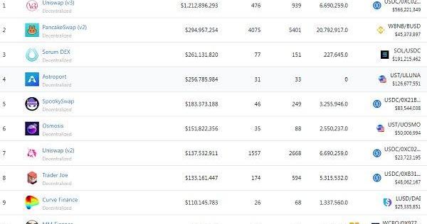 过去24小时去中心化交易所的交易量数据来源:coingecko