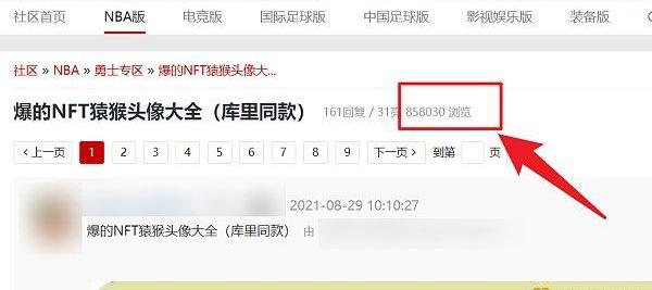 在虎扑社区中,关于库里同款的的NFT头像讨论,浏览量近85w+,属于「勇士专区」的热度话题。