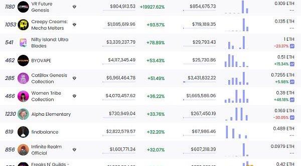 24小时内销售涨幅前十的NFT数据来源:NFTGO