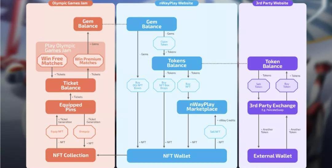 《OlympicGamesJam:Beijing2022》正是遵循了这一模式,允许玩家通过官方授权的奥运NFT数字徽章(NFTDigitalPins)来获得真实世界的奖品!如果玩家要实现这一目标,就需要将两个重要的组件连接在一起,这两个重要的组件分别是:您的《OlympicGamesJam:Beijing2022》游戏账户和您现有的nWayPlay账户。在连接了您的两个帐户之后,您赚取到的收益或者奖品都会反映在您的nWayPlay帐户中,同样地,您的nWayPlay信息及收益也会出现在游戏中,在那里您将能够访问游戏内所提供的应用程序。