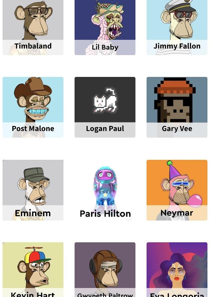 首先,各界名人和各大品牌越来越多地参与到了NFT领域。拥有广泛社交影响力的足球明星内马尔和知名影星凯文哈特就于近日公开宣布他们已入手「无聊猿」BoredApeYachtClub(BAYC)。