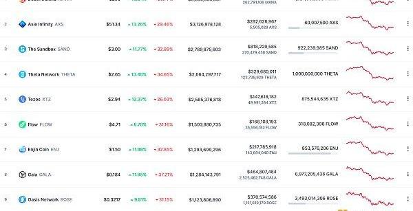 NFT总市值、市值排名前十项目数据来源:coinmarketcap