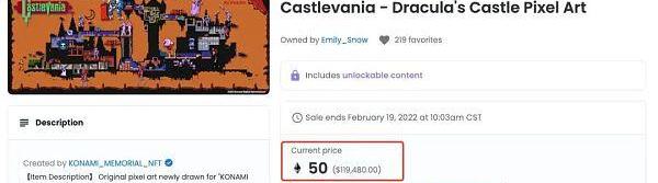 科乐美恶魔城游戏一张地图NFT的价格达到了11.9万美元,价格还在不断变化