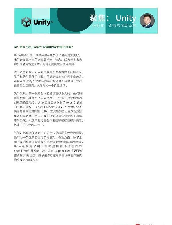 这份报告还采访了在实现元宇宙的道路上扮演着不同角色的关键企业,包括了TheSandbox、英伟达、Unity、世纪华通、元境等,并且在中国和全球做了大量大用户调研。