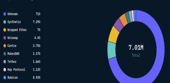 基于以太坊的大型dApps,如Uniswap和Synthetix已经在链上得到部署,并全面运作。Optimism有一个不断发展的原生生态系统,其中包括像RubiconFinance这样的DeFi项目,还包括一个已经启动并正在运行的NFT市场:Quixotic。Optimism上出现了几个NFT集合,前三名分别是OptiPunk、OptimisticBunnies和OldEnglish。目前最流行的dApps是DeFidApps;按日志发生率计算的话,前10名中有50%是DeFi应用。日志发生率是指一个实体的智能合约得到成功执行的次数。