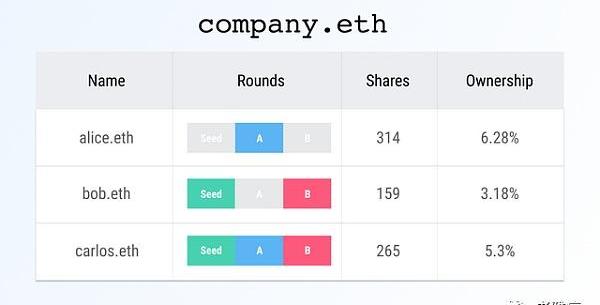 因为一个特定的公司通常将其所有的筹款过程保持在像Carta这样的单一平台的范围内,该平台可以很容易地将一个公司的主要资本构成表的镜像写入以太坊区块链,并在该公司的生命周期内维护它。然后,股东将收到镜像股份到他们的ENS地址。请注意,链外的资本表和相关的法律文件仍然是主要的法律目的;它们仍然是你用来遵守法律制度的东西。但是,Mirrotalbe将是每个人都会使用的东西。